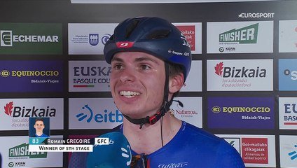 Même s'il a dû patienter quelques minutes avant de savoir s'il avait bien passé la ligne en vainqueur ou pas, Romain Grégoire ne cachait pas sa joie après son succès vendredi sur la 5eme étape du Tour du Pays basque, son premier en World Tour.