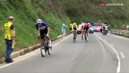 Fort dès que la route s'élève, ce duo a fini par avoir Mattias Skjelmose à l'usure. Ils ont collaboré pour aller au bout ensemble. Une entente gagnant-gagnant car Juan Ayuso n'a pas disputé la victoire à Carlos Rodriguez qui en plus d'enlever cette étape effectue une remontée sensationnelle à la seconde place du classement où il finit en tant que dauphin de son compagnon d'échappée. Relégué à 41 secondes, le leader déchu a fini 4eme, dans le même temps que Marc Soler (UAE Team Emirates) et le Britannique Oscar Onley (Team DSM). On retrouve ensuite à plus d'une minute du vainqueur du jour un groupe de favoris et d'échappés (+1:31) avec dans l'ordre Bauke Mollema (Lidl-Trek), Brandon McNulty (UAE Team Emirates) et Pello Bilbao (Bahrain Victorious).