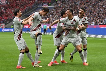 Granit Xhaka a ouvert le score à la 12ème minute avant qu'Hugo Ekitike ne parvienne à égaliser pour les locaux (1-1, 32ème), mais le Bayer ne s'est pas écroulé, bien au contraire. Juste avant la mi-temps, Patrick Schick a redonné l'avantage aux nouveaux champions d'Allemagne (1-2, 44ème) avant que la domination ne s'accentue en seconde période, matérialisée par les réalisations d'Exel Palacios (1-3, 58ème) Jeremie Frimpong (1-4, 77ème) et Victor Boniface (1-5, 89ème). Désormais, le Bayer Leverkusen est invaincu depuis 48 matchs toutes compétitions confondues et est donc dans les meilleures dispositions possibles avant de recevoir l'AS Rome - battue 2-0 à l'aller - en demi-finale retour de la Ligue Europa, jeudi.