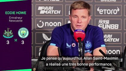 Difficile de faire plus complet face à Manchester City. Lors du nul spectaculaire de Newcastle face aux joueurs de Pep Guardiola (3-3), Allan Saint-Maximin a démontré ses qualités de percussion avec le ballon en y joignant un impact décisif car il a été impliqué sur les 3 réalisations de son équipe, même si il n'a pas inscrit son nom sur le tableau d'affichage. Qu'importe car aux yeux de son entraîneur, Eddie Howe, c'est la sensation d'émerveillement qui régnait après le coup de sifflet final. "Je pense qu'il a fait une excellente prestation et, dans cette forme, il donne une dimension totalement différente à notre équipe. Il est très important pour nous", a-t-il synthétisé. Kyle Walker, dans le dur durant toute la rencontre, doit sans doute partager cet avis.