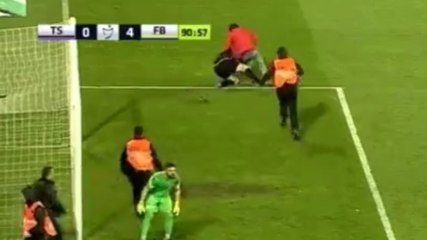 La rencontre a alors été arrêtée, et un individu s'est alors introduit sur le terrain pour venir frapper dans le dos Ozan Evrim Ozenc, le gardien d'Altay, avec un poteau de corner. D'autres joueurs et des membres du service de sécurité se sont alors interposés pour stopper ce « supporter ». Des actes de violence fermement condamnés par la Fédération turque. "Tout en souhaitant un prompt rétablissement aux fans qui ont été blessés, nous souhaitons également un prompt rétablissement au gardien de l'Altay, Ozan Evrim Ozenc, qui a été victime de violences de la part de cet agresseur qui est entré sur le terrain", écrit la TFF dans un communiqué.
