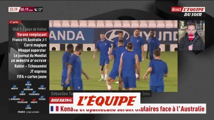 Jugé "apte et disponible" pour le match face à l'Australie (mardi, 20 heures) par Didier Deschamps, Raphaël Varane ne débutera pas la rencontre. Selon les informations de L'Equipe, c'est un duo Ibrahima Konaté - Dayot Upamecano qui formera l'axe central de l'équipe de France. Devant, Ousmane Dembélé devrait lui aussi débuter au vu de la mise en place tactique choisie par le sélectionneur national, ce lundi soir.
