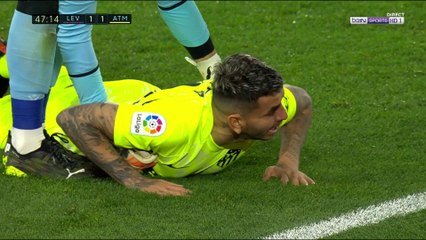 Consécutivement à un corner joué à deux, Marcos Llorente a tenté sa chance à plus de 20 mètres et par chance, son tir a été détourné par une tête adverse, changeant la trajectoire du ballon vers les filets de Fernandez (37ème). Le gardien de Levante s'est montré décisif devant Suarez (39ème) et Llorente (41ème) afin d'empêcher l'Atlético de doubler la mise, ce qu'aurait pu faire Ángel Correa mais il a raté un but de façon incroyable (47ème).