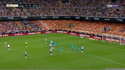 Le Real Madrid réalise un excellent début de saison, que ce soit en Liga ou en Ligue des Champions. Le club merengue, qui sort d'une excellente performance en C1 contre l'Inter Milan, faisait face à son premier gros test en Liga contre le FC Valence. Un test très relevé. Les Madrilènes ont entamé la rencontre de belle manière avec un ballon en retrait de Hazard pour Casemiro, qui tentait un tir enroulé du droit que Mamardashvili captait de justesse. De quoi donner le ton ? Oui, même si rien n'allait être inscrit dans le premier acte et ce, malgré des opportunités de part et d'autre dans une rencontre plaisante, avec notamment une superbe parade de Courtois sur une tête de Paulista en fin de première période.