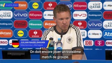 "On doit encore jouer un troisième match de groupe. On veut terminer à la première place, c'est important de gagner chaque match pour finir en tête. Ensuite on verra. On est qualifiés certes, mais il reste un match à jouer", a commenté le technicien de l'Allemagne, conscient que son équipe ne pouvait pas influencer les résultats dans les autres groupes. En cas de première place, l'Allemagne défierait le 2ème du groupe C (Espagne, Italie, Croatie ou Albanie) au tour suivant mais avant de penser à cela, les joueurs ont préféré retenir le positif d'un nouveau succès dans cette compétition à domicile. "C'est une seconde étape passée. Il est rare de gagner les deux premiers matches d'une phase de groupes. Nous avons eu du mal mais nous avons réussi à gagner. Nous y arrivons depuis le mois de mars, même en étant menés, car nous savons que nous pouvons renverser les situations. Nous sommes solidaires. J'espère que cela nous portera loin", a notamment déclaré Toni Kroos, qui raccrochera les crampons au terme du tournoi.