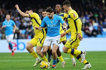 En seconde période, les visiteurs inscrivent le premier but du match sur un coup franc frappé par Suslov. Coppola de l'épaule saute plus haut que tout le monde et glace tout un stade (72ème, 0-1). On se dit que l'exploit est proche pour le 18e du championnat, surtout que Montipo multiplie les parades. Mais un ancien de la maison véronaise se charge de remettre les deux équipes à égalité. Pour son deuxième match avec Naples, le Belge Cyril Ngonge inscrit son premier but (79ème, 1-1) sous ses nouvelles couleurs, après deux saisons passées à... Vérone ! Kvara prend les choses en main pour un finish de folie.