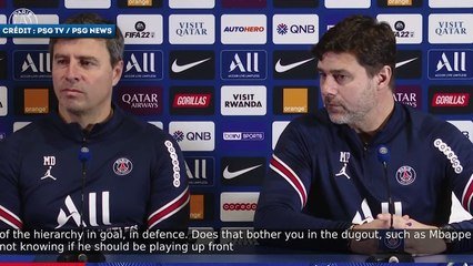 Mauricio Pochettino continue de faire l'autruche face aux journalistes. Alors qu'il lui était demandé qui était le leader de l'attaque au Paris Saint-Germain, entre Lionel Messi et Kylian Mbappé (puisque Neymar est indisponible), en relayant le sentiment global d'une incompréhension au sein même des joueurs, l'entraîneur argentin a d'abord répondu qu'il ne comprenait pas la question. Avant de tenter un trait d'humour en sortant de la pièce : "Je vais partir et revenir, car on ne se comprend pas." Non sans avoir, au préalable, asséné le classique "Si vous comprenez tant le football, pourquoi ne venez-vous pas vous asseoir à ma place ?" Après le match nul contre Nice mercredi soir au Parc (0-0), les doutes autour du Paris Saint-Germain demeurent plus présents que jamais.