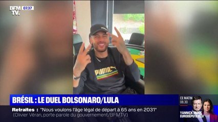 Un soutien qui ne passe pas. Dans une vidéo publiée sur les réseaux sociaux jeudi, Neymar a appelé à voter pour Jair Bolsonaro, le président brésilien, qui brigue un deuxième mandat. Un message bienvenu pour le candidat d'extrême-droite, qui fait campagne sur la sécurité et la foi et est largement devancé dans les sondages par l'ancien président Lula, avant le premier tour des élections présidentielles, programmé ce dimanche 2 octobre. Dans cette vidéo publiée sur TikTok, l'attaquant du PSG danse sur une chanson de soutien à Bolsonaro, en rappelant le numéro qu'il faudra sélectionner dans l'urne pour faire réélire le controversé homme d'état.