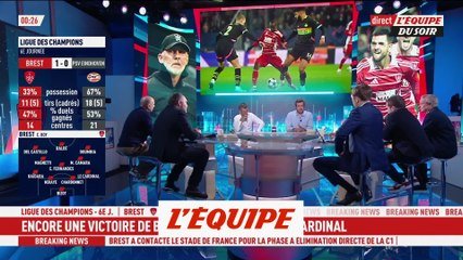 Brest au Stade de France à l'occasion d'un 16ème de finale ou 8ème de finale de Ligue des champions, ce n'est pas tellement dans les tuyaux, à l'heure actuelle. Mardi soir, la formation dirigée par Éric Roy a continué sa marche en avant dans le tournoi en prenant le meilleur sur le PSV (1-0) et a assuré sa qualification, au minimum pour les barrages, même si le technicien ne s'est pas interdit de rêver d'un éventuel top 8 qui ne paraît pas si impossible que cela tant cette équipe ne cesse de surprendre dans la reine des compétitions européennes.