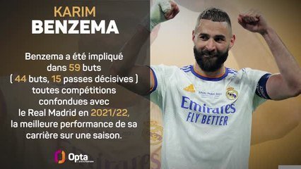 Deuxième Ballon d'Or français du Real Madrid, Karim Benzema ne doit son succès qu'à son équipe, souveraine en Ligue des champions pour la quatorzième fois de son histoire. Son impact lors de cette C1 a été exceptionnel.