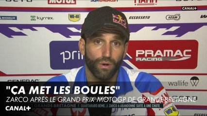 Il y a eu des sentiments mitigés pour Johann Zarco, au micro de Canal +, au moment d'évoquer sa course du jour lors du Grand Prix de Grande-Bretagne. Parti depuis la pole position, le pilote Ducati Pramac a fait bonne impression en début de course jusqu'à une chute survenue au cinquième tour, entrainant son abandon. Une terrible issue pour celui qui espérait enfin décrocher sa première victoire en MotoGP. « C'est une chute où il n'y a pas eu de gros changement au niveau de la trajectoire et du freinage. Peut-être que ce pneu avant medium n'avait pas assez de grip, a-t-il regretté après la course. Mais vu la chaleur, choisir le soft était inquiétant. Je suis bien parti. C'était agréable de mener la course mais ça met les boules de chuter comme ça. C'est dur de mettre tout bout à bout pour aller gagner. »