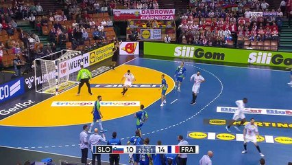 Privés de Dika Mem (touché aux abdominaux) mais avec Luka Karabatic (qui était touché au dos), les Français ont pris les commandes du match dès le début et ne les ont plus lâchées. Il a fallu attendre la onzième minute pour voir les hommes de Guillaume Gille prendre enfin deux buts d'avance (6-4), puis à partir de 8-6, avec le 500eme but en carrière internationale de Kentin Mahé, les Français ont toujours mené d'au moins deux buts jusqu'à la fin du match. Portés par un excellent Nedim Remili, les Français ont mené jusqu'à 15-10 (23eme) avant de se relâcher un peu avant la mi-temps. Le gardien slovène a commencé à sortir quelques arrêts et a remis son équipe à -2 à la pause (16-14). A la mi-temps, les Bleus avaient rentré 55% de leurs tirs, contre 64% pour les Slovènes.