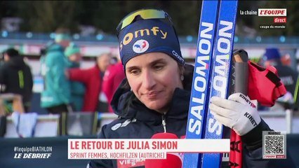 De retour à la compétition depuis sa suspension d'un mois pour vol et escroquerie, Julia Simon s'est confiée à l'issue de la course à l'Équipe évoquant notamment sa forme et son retour dans le groupe de l'Équipe de France.