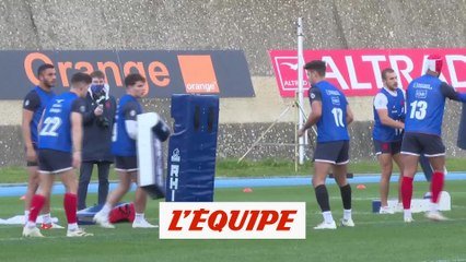 Aux grands maux les grands remèdes. Pour tenter de devenir la deuxième équipe en deux semaines après l'Irlande à faire chuter la Nouvelle-Zélande, Fabien Galthié confiera les clés du jeu à sa charnière habituelle avant le coup d'envoi de cette tournée d'automne. Utilisé dans le rôle de trois-quarts centre lors des deux premières sorties des Bleus, toutes deux victorieuses, contre l'Argentine à Saint-Denis et face à la Géorgie à Bordeaux, Romain Ntamack, qui portait le numéro 10 mercredi à l'entraînement sous les yeux de Jean Dujardin, retrouvera donc l'ouverture samedi soir (21h00) au Stade de France face aux All Blacks et être donc associé pour la première fois de la tournée à son coéquipier en club à Toulouse Antoine Dupont. Un choix, certes attendu, qui reléguera l'ouvreur des deux premiers matchs Matthieu Jalibert sur le banc de touche, samedi au coup d'envoi. Sans surprise là aussi, le sélectionneur français fera confiance à Peato Mauvaka en l'absence de Julien Marchand, autre forfait pour le choc de samedi avec Sekou Macalou.