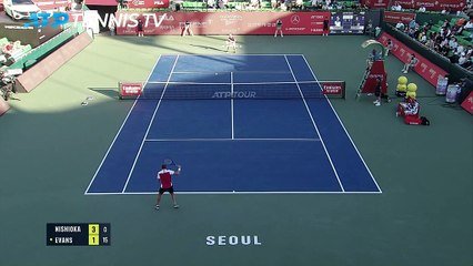 Un autre Américain a quitté le tournoi séoulien aux portes de la finale, en l'occurrence la surprise Aleksandar Kovacevic qui a livré une belle bataille mais n'a pas su résister au Japonais Yoshihito Nishioka. Tombeur au tour précédent de la tête de série numéro 1 Casper Ruud, le 56eme joueur mondial a emporté une nouvelle victoire en trois manches. Il a été solide derrière ses engagements mais son unique break concédé avant le set décisif lui a coûté la perte du second acte après avoir pris les devants dans cette rencontre grâce à deux breaks dans la manche inaugurale. La plus forte expérience de Nishioka au plus haut niveau lui a permis de rester accroché et de faire la différence quand les nerfs ont dû s'exprimer. Il a breaké une dernière fois Kovacevic quand ce dernier venait de recoller et a terminé par un jeu blanc. Après une partie dans laquelle il n'a commis que cinq fautes directes, le revoilà en finale moins de deux mois après avoir chuté au plus près du titre à Washington.