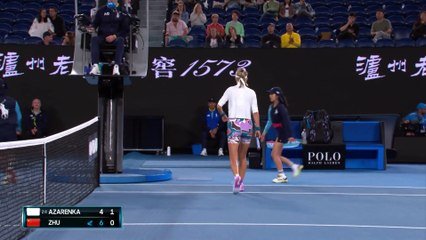 Dans la douleur, Victoria Azarenka trace sa route à l'Open d'Australie. Après avoir dû renversé Madison Keys au tour précédent, la Biélorusse a encore une fois eu du mal à s'en sortir face à Lin Zhu. Cependant, lors dernier match de la nuit à Melbourne, la 24eme mondiale au classement WTA a fini par l'emporter ce dimanche face à la Chinoise en trois sets (4-6, 6-1, 6-4) et 2h42 de jeu. Novice à ce stade de la compétition, la 87eme mondiale a dans un premier temps crânement joué sa chance et a empoché la première manche grâce à un dernier break à 3-3. Dos au mur, Azarenka a alors réagi avec la manière avec un cinglant 6-1, en 43 minutes de tout de même. Dans le dernier set, après six breaks de suite puis deux jeux blancs, la Biélorusse a pris une dernière fois le service de Zhu avant de conclure derrière, après avoir tout de même dû sauver deux balles de débreak.