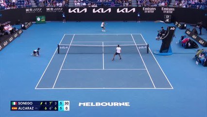 Carlos Alcaraz n'a pas vraiment eu à s'employer. L'Espagnol, 2eme joueur mondial et tête de série n°2, a validé sa qualification pour les huitièmes de finale de l'Open d'Australie, après avoir profité de l'abandon du Chinois Juncheng Shang, 140eme joueur mondial et bénéficiaire d'une wild card, dans la troisième manche (6-1, 6-1, 1-0) et après seulement 1h05 de jeu. Dans la première manche, à 1-1, le Chinois a cédé ses trois derniers services. Malgré une première balle sauvée lors du premier, puis quatre autres dans la foulée. Et enfin une dernière pour finir, avant d'offrir, malgré tout et toujours sur son propre service, ce premier set à son adversaire du jour (6-1). Dans la deuxième manche, à 1-2, Juncheng Shang a cédé, cette fois, ses deux derniers services.