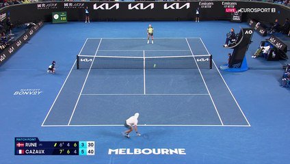 Après un premier set sans la moindre balle de break, il a empoché la manche en gagnant le jeu décisif 7-4. Sur sa lancée, et porté par un "kop" de supporters français en feu, Cazaux a breaké d'entrée de deuxième manche et Rune n'a jamais réussi à revenir, malgré une balle de 2-2. Le Danois, qui a sauvé une balle de break d'entrée de troisième set après un long jeu, a fini par faire craquer son adversaire au meilleur moment, à 4-5, pour revenir à une manche à deux. Le Montpelliérain allait-il s'écrouler sous la pression ? Pas du tout ! Il a encore breaké lors du premier jeu du quatrième set, puis a sauvé une balle de 4-4, et alors que Rune servait pour rester dans le match à 3-5, il a converti sa deuxième balle de match, sur un magnifique passing, pour signer la plus belle victoire de sa carrière. Une victoire synonyme de 101eme place mondiale au classement virtuel et de chèque de 157 000 euros. Arthur Cazaux peut même légitimement ambitionner une place en deuxième semaine, puisque son prochain adversaire sera Tallon Griekspoor, tombeur d'Arthur Fils en quatre manches. Mission impossible ? Sans doute pas !