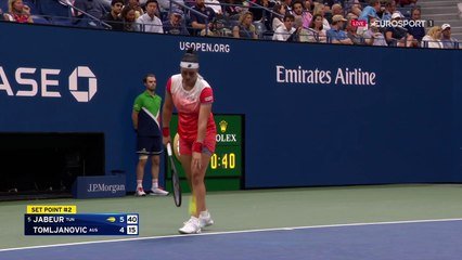 Ons Jabeur commence à prendre goût aux demi-finales en Grand Chelem. La Tunisienne, qui n'avait jamais fait mieux qu'un quart de finale avant cette saison, s'est qualifiée pour le dernier carré de l'US Open après avoir pris part à celui de Wimbledon en juillet dernier. Pour cela, la tête de série numéro 5 à Flushing Meadows a mis fin au parcours d'Ajla Tomljanovic, tombeuse notamment de Serena Williams durant la quinzaine new-yorkaise. A sa première balle de break, Ons Jabeur a été en mesure de prendre le service de la 46eme joueuse mondiale afin de mener trois jeux à rien. Toutefois, l'Australienne a eu de quoi répondre et, à sa deuxième opportunité, a pu recoller. Dans la foulée, le souvent important septième jeu a tourné en faveur de la 5eme joueuse mondiale. Un deuxième break en sa faveur qui s'est avéré décisif dans le gain de la première manche.