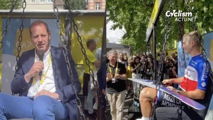 Au départ de la 9e étape du Tour de France, ce dimanche 7 juillet à Troyes... on a eu le droit à un sacré duel. Paul Lapeira, le champion de France sur route en titre, contre Christian Prudhomme, le directeur du Tour. En jeu, le Prix du poids en Champagne. On vous laisse deviner qui l'a emporté et savourer le moment en vidéo. C'était ce dimanche au Village Départ à Troyes et ça fait du bien de sourire.
