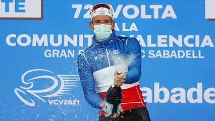 La réaction d'Arnaud Démare (Groupama-FDJ) après sa victoire sur la 2e étape du Tour de la Communauté de Valence.