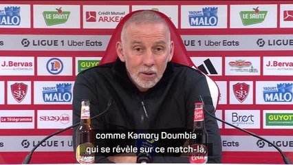 Kamory Doumbia a inscrit un formidable quadruplé pour permettre à Brest de l’emporter contre Lorient. Éric Roy félicite ses joueurs et particulièrement son quadruple buteur.