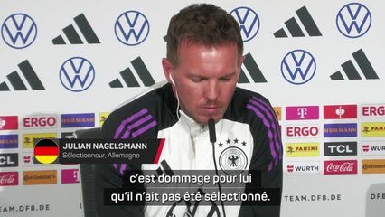 Le sélectionneur allemand Julian Nagelsmann, interrogé sur l'équipe de France, s'est étonné de l'absence dans la sélection du jeune attaquant français du Bayern Munich, Mathys Tel.
