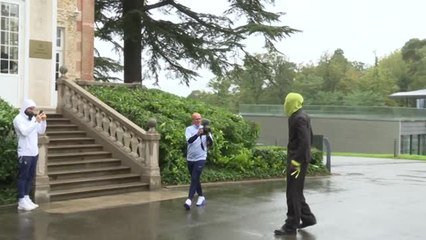 Malgré une météo bien capricieuse à Clairefontaine, Ibrahima Konaté a soigné son arrivée au domaine des Bleus ce lundi. Le défenseur de Liverpool s'est présenté bien caché sous une cagoule jaune avant de dévoiler son visage, ce qui aura eu le mérite de faire sourire les journalistes trempés sous la pluie des Yvelines.