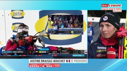Malgré une faute sur le tir debout, Justine Braisaz-Bouchet a décroché une belle deuxième place, seulement battue par Ingrid Tandrevold et son tir parfait.