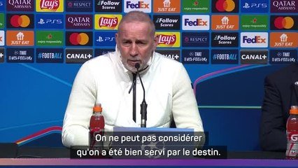 Éric Roy trouve que le score est lourd après la défaite de Brest 3-0 contre le Real Madrid. Le coach du club breton est partagé entre un sentiment positif et de la frustration.