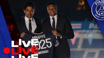 Conférence de presse de Nasser Al Khelaïfi et Kylian Mbappé au Parc des Princes