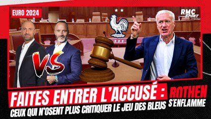 Ce soir dans “Faites entrer l’accusé” de l’émission Rothen S’enflamme, sont placés sur le banc des accusés les gens qui n'osent plus faire de critiques sur le jeu de l’équipe de France. Christophe Dugarry endosse le rôle du Procureur, Eric di Meco celui de l’avocat et Jérôme Rothen tranchera en donnant sa décision de juge.