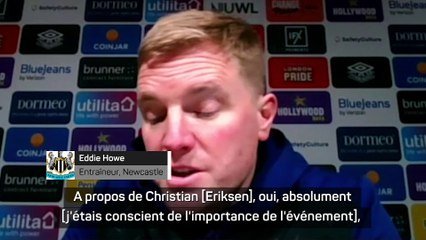 Huit mois après son accident cardiaque, Christian Eriksen a refoulé une pelouse professionnelle avec Brentford, face à Newcastle. L'entraîneur des Magpies Eddie Howe est ravi du retour du Danois, un moment émouvant pour le football selon lui.