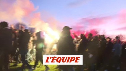Découvrez les images du cortège parisien en marche pour Anfield. Leur avancée est rythmée par leurs chants sur fond de fumigènes.