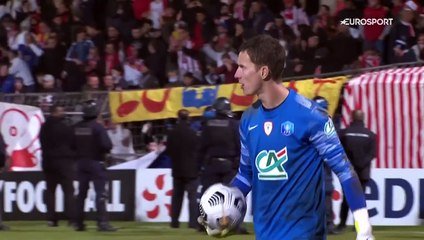 COUPE DE FRANCE - Revenu au score face à Dijon (1-1), l'AS Cannes est parvenu à créer l'exploit de ces 32es de finale en s'imposant à l'issue de la séance de tirs au but (1-1, 3 tab à 2). Le pensionnaire de N3 s'offre le scalp d'une Ligue 2, un joli coup pour les Cannois. Retrouvez l'intégralité de la Coupe de France sur Eurosport.
