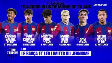 Lamine Yamal a offert la victoire au Barça contre Majorque vendredi dernier (1-0). Le joueur de 16 ans prend de l'épaisseur, à l'image d'un nombre grandissant d'éléments de moins de 20 ans dans l'équipe de Xavi. Mais forcément, ce jeunisme a ses limites, comme nous l'indique Anna Carreau dans Tour d'Europe (Réalisation : H.Hiault / S.Petit / Q.Guichard). Les chaines Eurosport sont disponibles au sein des offres Canal+, Prime Video et Bouygues Telecom