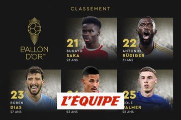 Cole Palmer (Manchester City / Chelsea), William Saliba (Arsenal), Ruben Dias (Manchester City), Antonio Rüdiger (Real Madrid) et Bukayo Saka (Arsenal) se classent de la 25e à 21e place du classement du Ballon d'Or 2024.