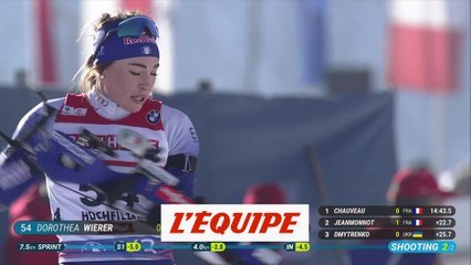 En difficulté lors des épreuves individuelles de Kontiolahti (Finlande) la semaine dernière, Sophie Chauveau a retrouvé son tir ce vendredi pour prendre la deuxième place du sprint d'Hochfilzen (Autriche) avec un 10/10. Elle est devancée par Franziska Preuss, alors que Karoline Knotten complète le podium. Retrouvez les temps forts de la course.