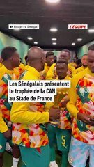 Les joueurs du Sénégal présentent le trophée de la CAN au Stade de France. - Foot - CAN
