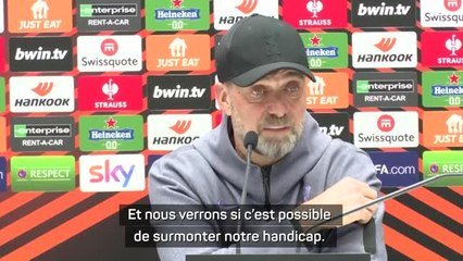 À la veille de son quart de finale retour de la Ligue Europa contre l'Atalanta, le coach des Reds refuse de mettre la pression à son équipe. Après avoir été battu 3-0 sur sa pelouse à Anfield, Liverpool veut simplement faire un grand match en Italie et ensuite... qui sait ce qui peut se passer en coupe d'Europe.