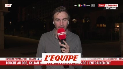 Alors qu'il a déjà raté des séances lors de la préparation, Kylian Mbappé n'a pas participé samedi à la mise en place en raison d'un coup reçu mercredi, à la veille du match face au Canada (21 h 15), dernier match de préparation avant le début de l'Euro.
