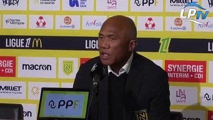 La réaction d'Antoine Kombouaré, l'entraîneur nantais, après la défaite 2-1 contre l'OM à Nantes.