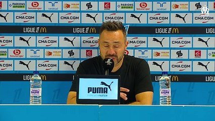 La réaction en conférence de presse de l'entraîneur olympien, Roberto De Zerbi, après le succès de son équipe à l'Orange Vélodrome face à l'OGC Nice lors de la 4e journée de L1.