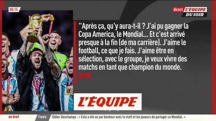 De nouveau élu meilleur joueur de la Coupe du monde après la victoire de l'Argentine contre la France (3-3 a.p., 4-2 aux t.a.b.), Lionel Messi (35 ans) a déclaré qu'il voulait « faire honneur au titre de champion de monde ».