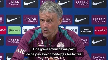 Avant le dernier match de la saison en Ligue 1 face à Auxerre et donc la célébration du titre de champion au Parc des Princes, Luis Enrique s'est rappelé en conférence de presse les festivités de la saison dernière, et il a avoué avoir commis une erreur.