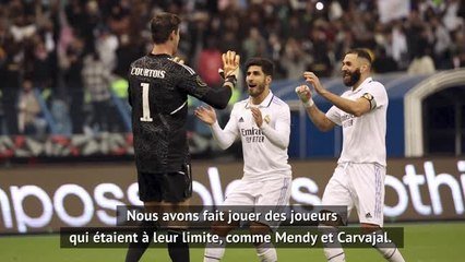 Le Real Madrid a dû passer par la séance des tirs au but pour se qualifier mercredi soir pour la finale de la Supercoupe d'Espagne aux dépens de Valence (1-1, 4-3 aux tab). Après ce match difficile, Carlo Ancelotti préfère retenir le résultat.