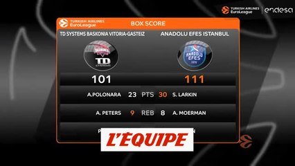 VIDÉO BASKET - Revivez en images les meilleurs moments du match entre le Baskonia Vitoria et l'Anadolu Efes Istanbul (101-111), comptant pour la 33e journée de saison régulière d'Euroligue.