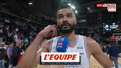L'ailier de Lyon-Villeurbanne Timothé Luwawu-Cabarrot réagissait après la victoire de son équipe face au Portel (85-70) lors de la 33e journée de Betclic Elite.
