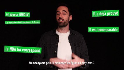 Le phénomène de ce début de saison de NBA, numéro 1 de draft, Victor Wembanyama est-il capable de hisser une équipe catastrophique en défense, les Spurs, jusqu'aux play-offs ? C'est la question débattue par Sami Sadyk et Gaëtan Delafolie, journalistes à L'Équipe.