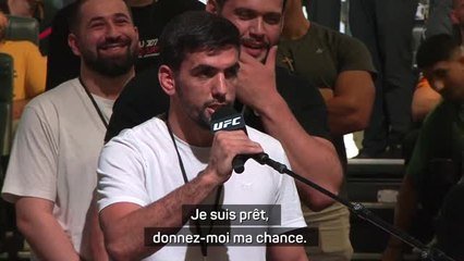 Scène insolite en conférence de presse de l'UFC 308, lorsqu'un combattant anonyme a pris le micro pour demander à Dana White de lui donner sa chance... et un contrat ! Le président de l'UFC, qui a flairé le buzz et, peut-être, le futur champion de demain, a fait monter le jeune homme de 25 ans sur scène avant de l'envoyer l'attendre en coulisses, pour le plus grand bonheur du public.
